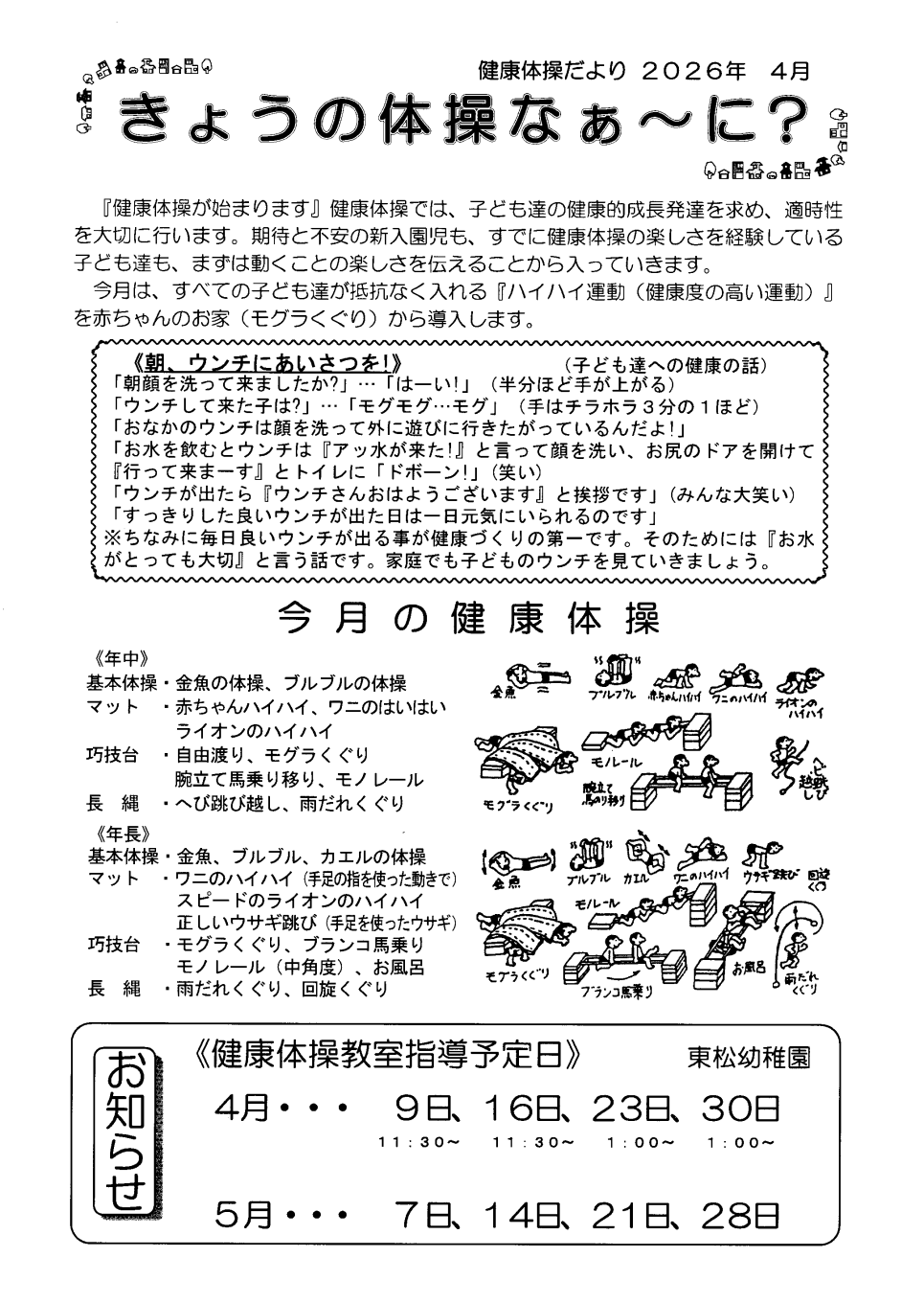 ‚SŒŽ‚ÌŒ’N‘Ì‘€‹³Žº‚Ì—\’è‚Å‚·